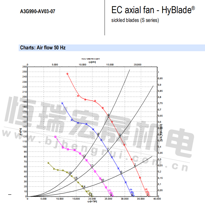 德國ebm全新A3G990-AV03-07軸流風機曲線圖