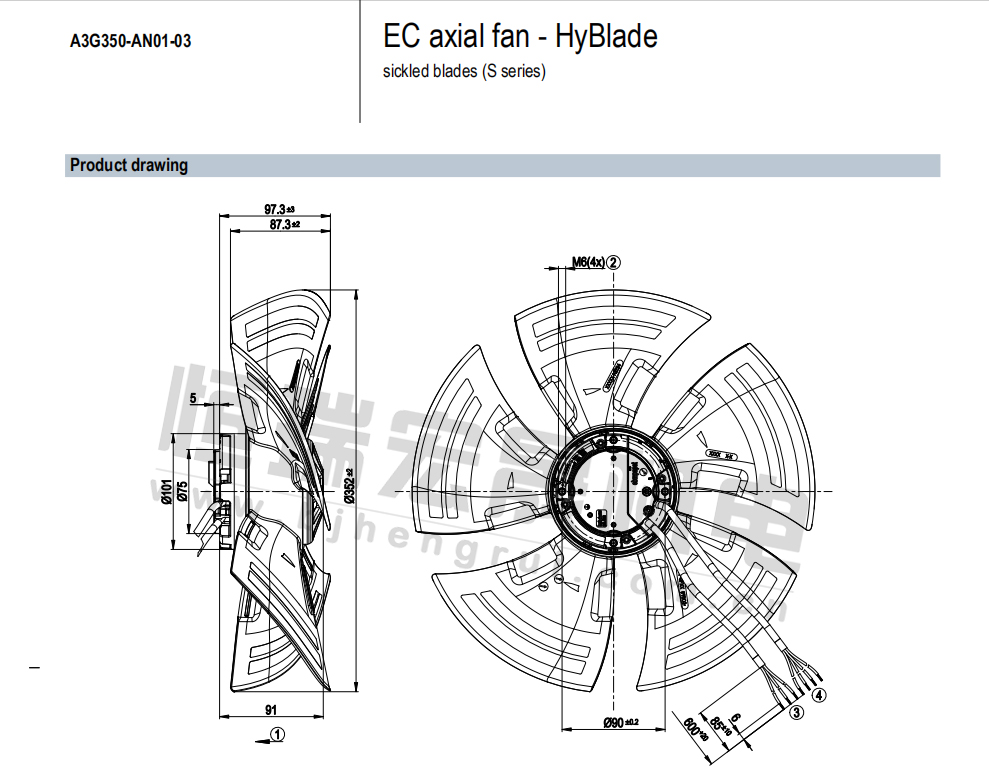 原裝軸流ebm風機A3G350-AN01-03的規格圖