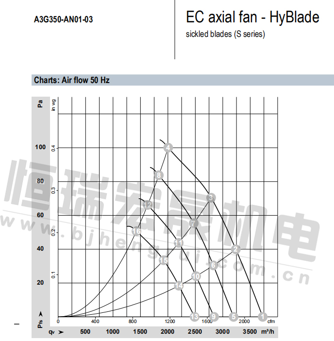 德國ebmpapst原裝A3G350-AN01-03風機的曲線圖