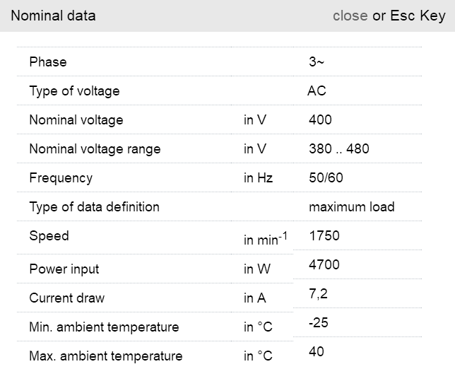 K3G560-RA25-71電壓:380-480V電流:3.65A功率:2360W 轉速:1540r/min 重量:42.3KG