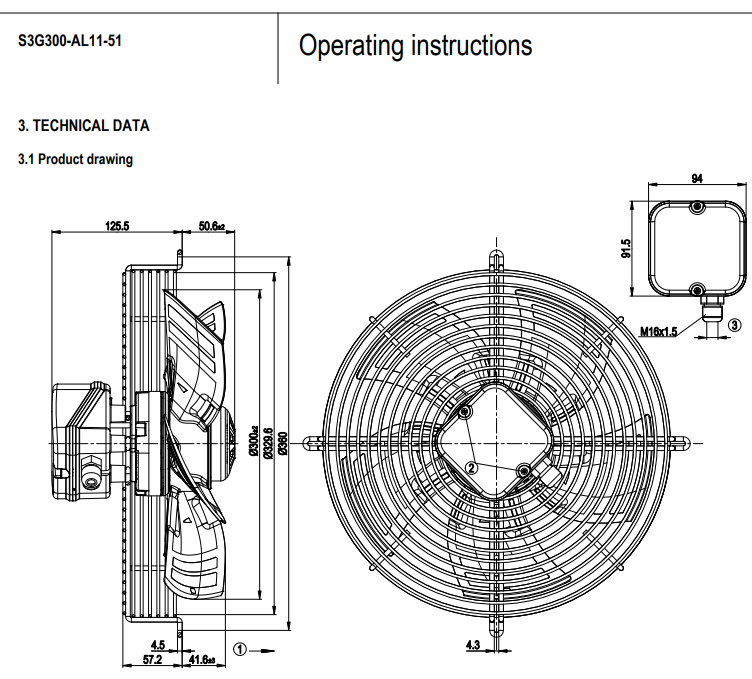 德國ebm全新S3G300-AL11-51軸流風(fēng)機規(guī)格圖