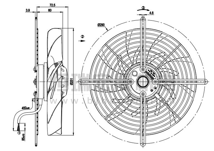 德國ebmpapst S2E250-BM06-01 風機規格圖