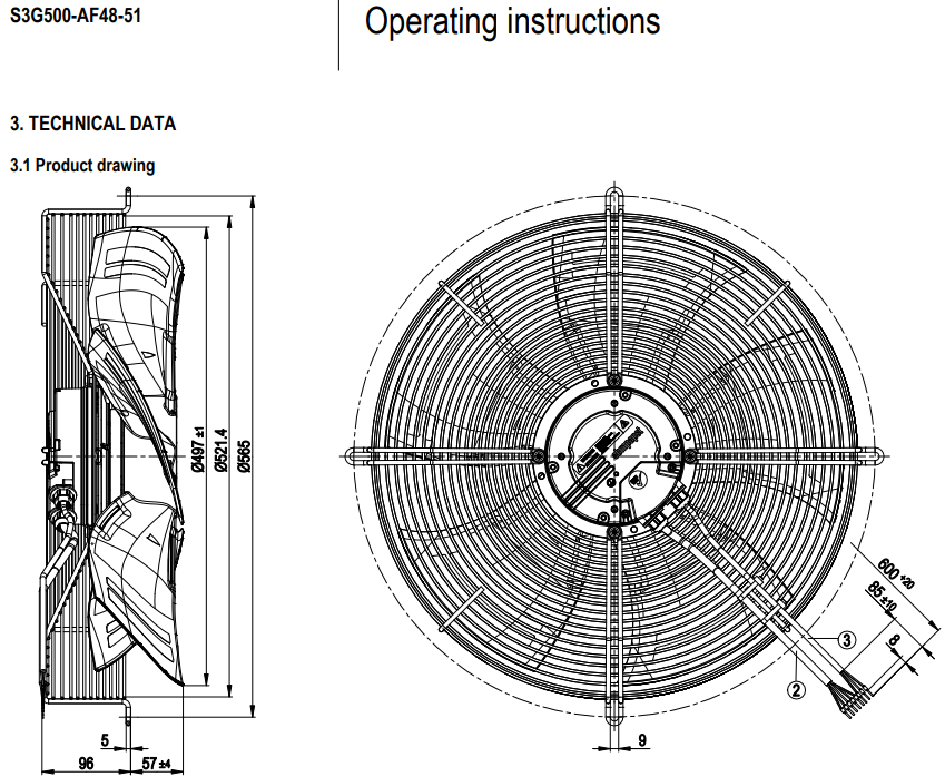 德國ebm全新S3G500-AF48-51軸流風機規格圖曲線圖