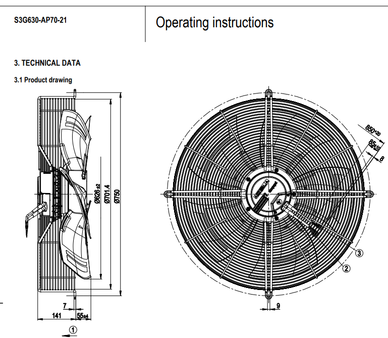 原裝正品軸流ebm風(fēng)機(jī)S3G630-AP70-21的規(guī)格圖
