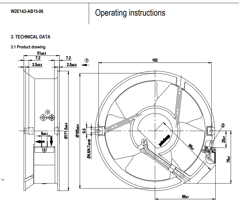 德國ebm全新W2E143-AB15-06軸流風(fēng)機(jī)規(guī)格圖