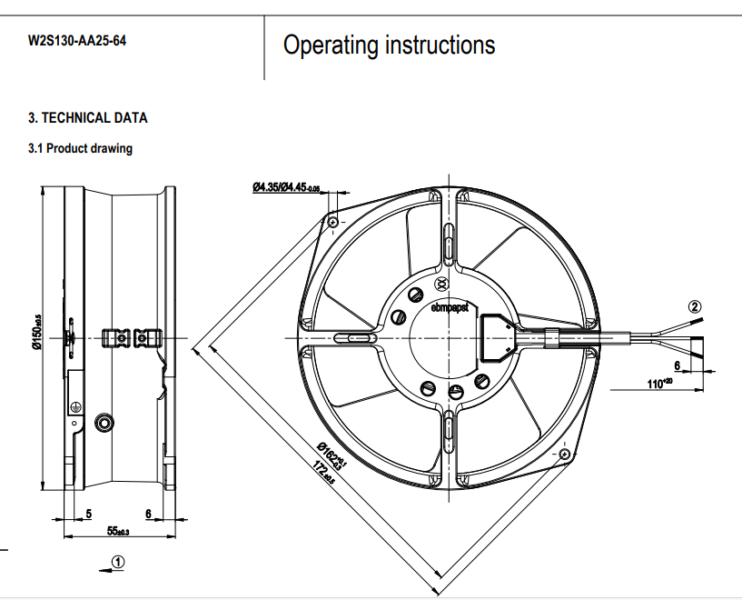 德國ebmpapst原裝正品W2S130-AA25-64風機的曲線圖