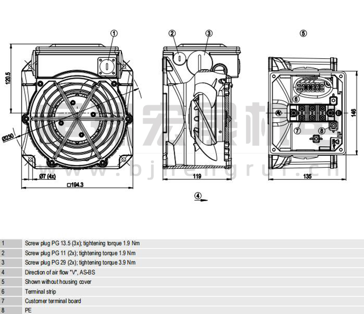 德國ebmpapst W2D160-EB22-18風機結構圖