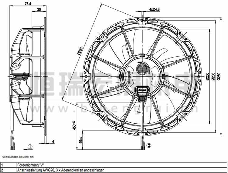 德國ebmpapst W1G200-EA87-25軸流風(fēng)機(jī)結(jié)構(gòu)圖