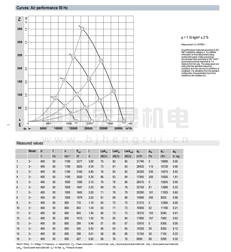 W3G800-LV05-03/F01 ebmpapst風機結構風量圖: