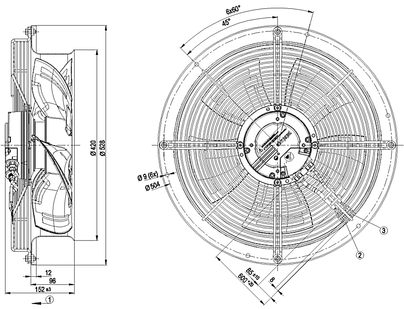 原裝正品軸流ebm風(fēng)機(jī)W3G400-CC22-51的規(guī)格圖
