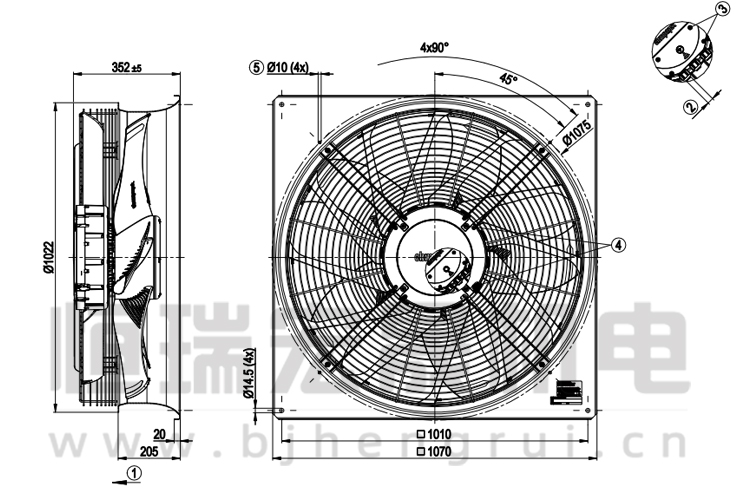 德國ebmpapst W3G910-LU25-03/F01 軸流風機結構圖