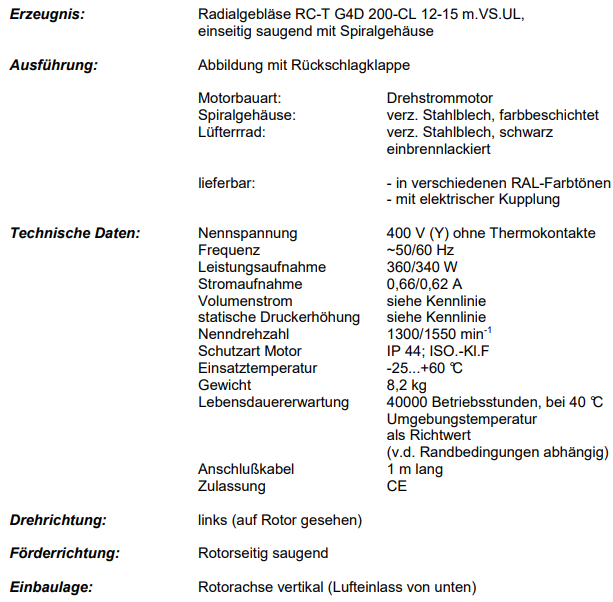 徑向鼓風機RC-T G4D 200-CL 12-15 m.VS.UL,單側吸氣,帶螺旋外殼