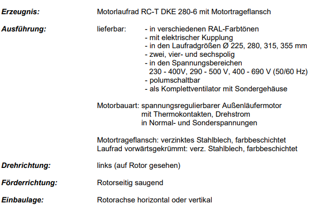 RC-T DKE 280-6離心風機,適用于通風散熱制冷,能源技術行業