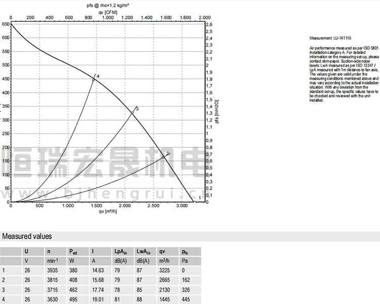 德國ebmpapst W3G300-BV25-21風機曲線圖