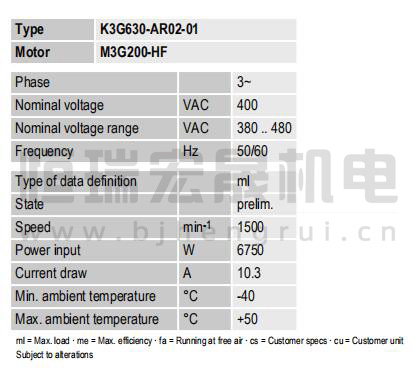 K3G250-RE07-07電壓:240V 電流:1.40A 功率:170W 轉(zhuǎn)速:2510r/min 頻率:50Hz