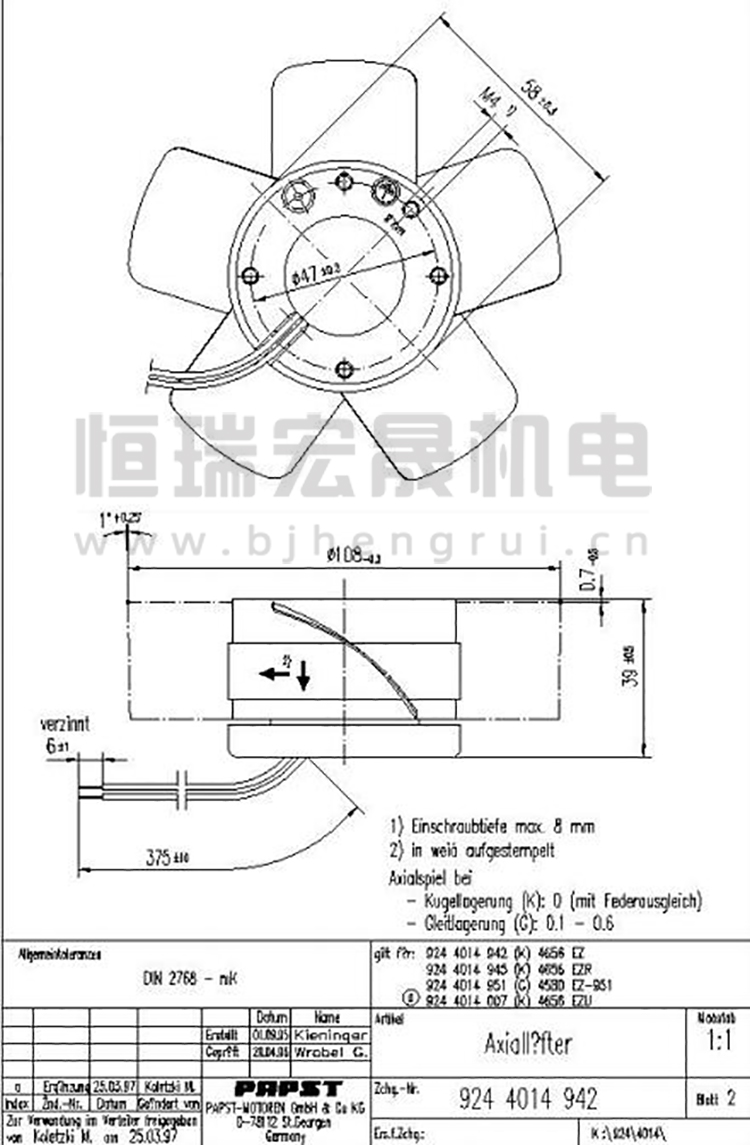 北京恒瑞宏晟機電設備有限公司經營離心風機、軸流風扇、貫流風扇、變頻器風扇數十年,產品匯聚世界風機風扇品牌,長期供應德國ebmpapst(依必安派特)風機,型號齊全,大量現貨。