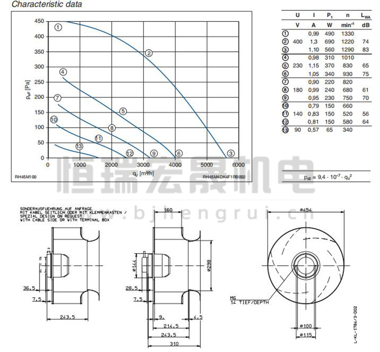 德國ziehl-abegg RH45M-VDK.4F.1R風機結構曲線圖