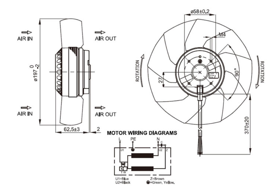 外轉式軸流風扇, 較傳統軸流風扇具有更強大的風量與轉速, 金屬扇葉設計特別符合工業化用戶的各種需求