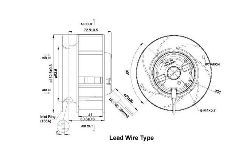 離心扇氣流入風口與出風口成90度的結構設計, 適合需要特殊應用的工業化用戶