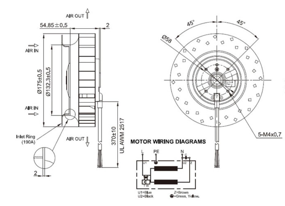離心扇氣流入風口與出風口成90度的結構設計, 適合需要特殊應用的工業化用戶
