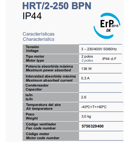產(chǎn)品型號: HRT/2-250 BPN 5750329400