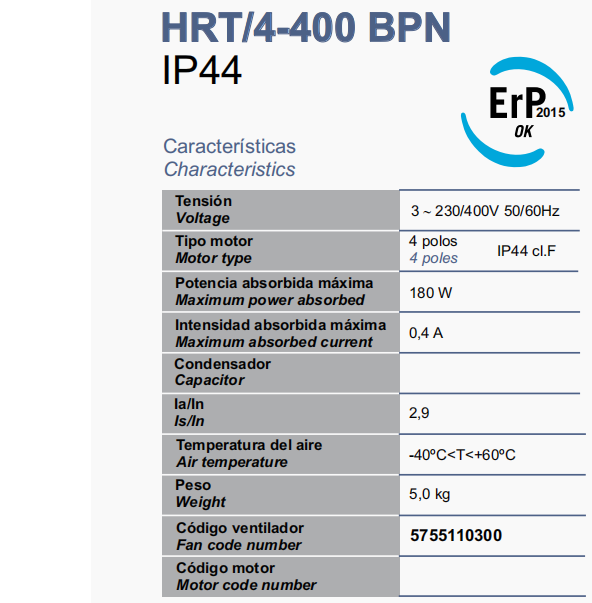 產品型號:HRB/6-400 BPN 5755100900