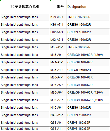 - EC 電機帶外轉子230V50 / 60Hz和120V50 / 60Hz,