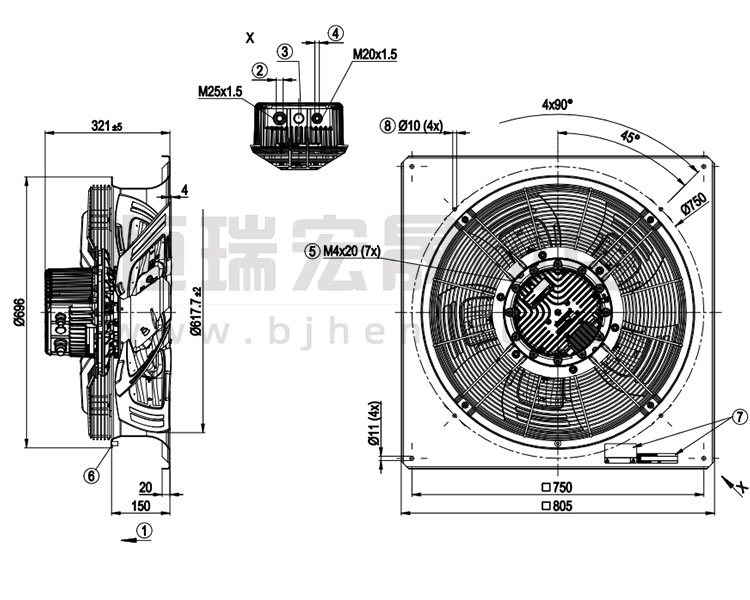 德國ebmpapst W3G630-GU23-91軸流風機結構圖