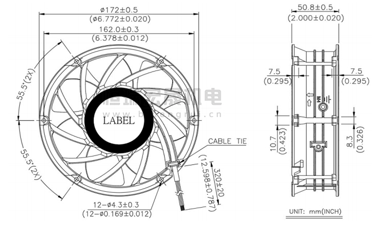 Ø172*50.8mm 臺達Delta風機結構圖