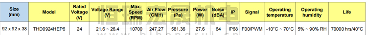 92*92*38mm 臺達Delta風機參數表