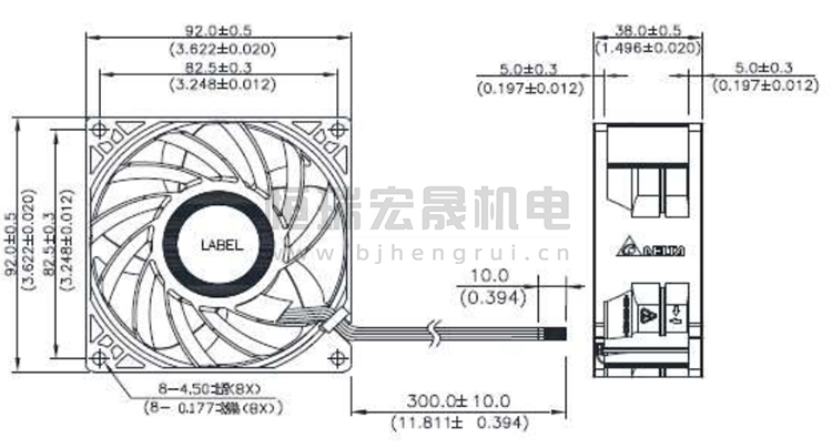 92*92*38mm 臺達Delta風機結構圖