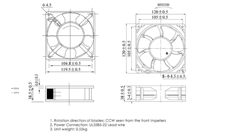 雷普 機柜散熱風扇 F2E-120B-230