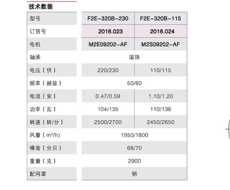 F2E-320B-230 雷普風扇 參數圖