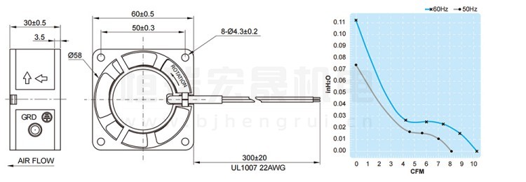 UF60D23BWH FULLTECH 福佑風機結構風量圖: