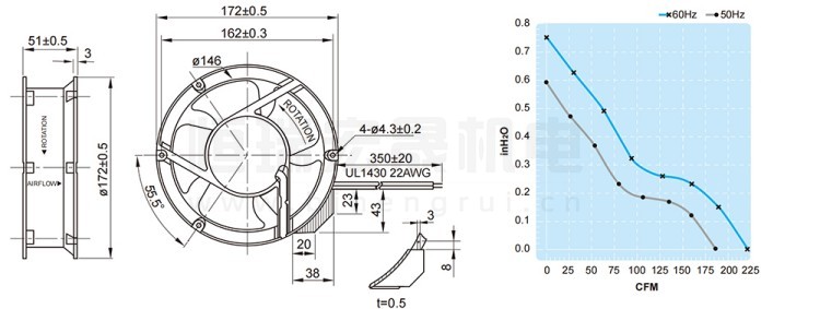 UF17PC23BTH FULLTECH 福佑風機結構風量圖: