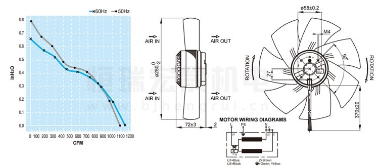 UF250BMB23H1C2E FULLTECH 福佑風機結構風量圖: